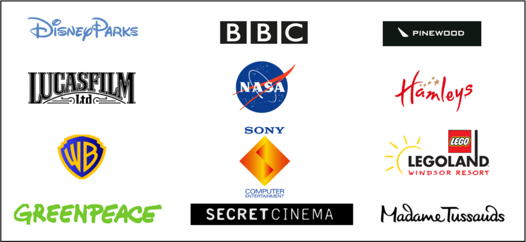 Throughout our years of service, we have been privileged to work with an extraordinary range of organisations and institutions. Our customers and collaborators have included Disney Parks in France, Italy and the USA, Lucasfilm Ltd, Warner Bros, NASA, Secret Cinema, Pinewood Studios, Hamleys, Madame Tussauds, Greenpeace, Sony Entertainment, Legoland, professional costume departments, many costume groups and 501st Legions worldwide.