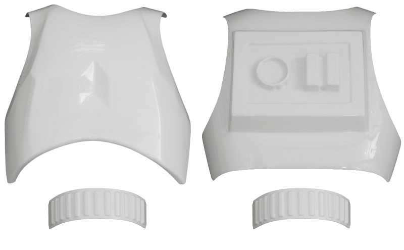 This armour part is manufactured in durable white ABS plastic and supplied finished and trimmed, allowing straightforward fitting into new builds or existing armour repairs.