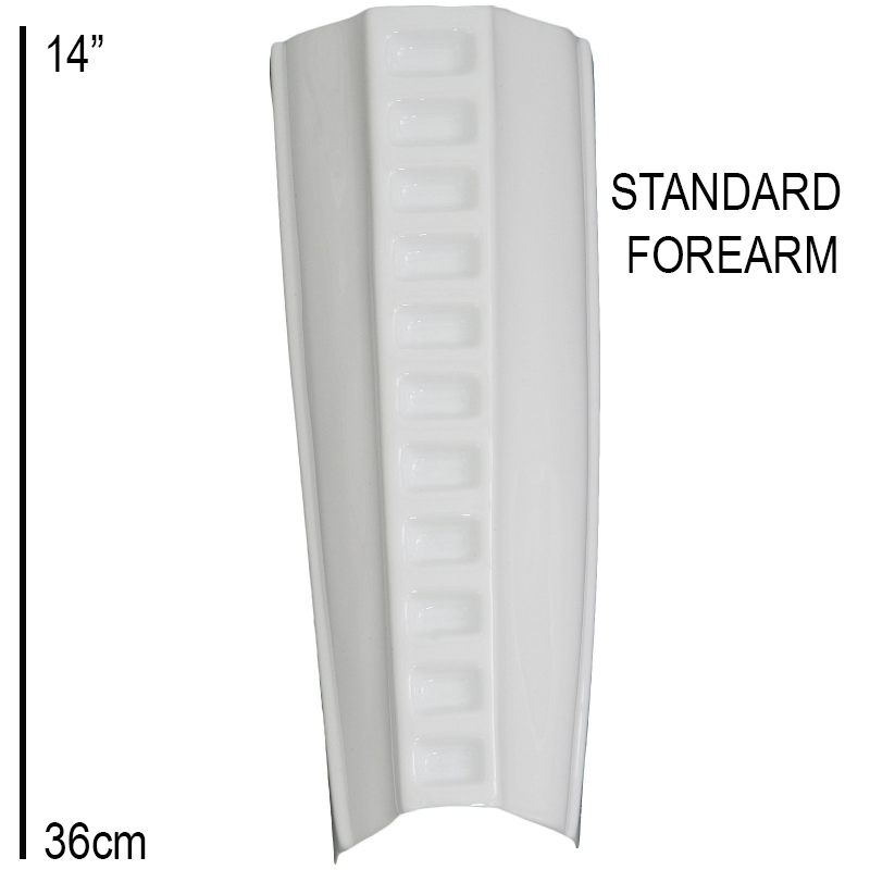 This armour part is manufactured in durable white ABS plastic and supplied finished and trimmed, allowing straightforward fitting into new builds or existing armour repairs.