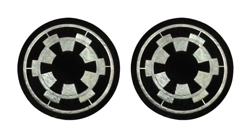 Replica Imperial shoulder patches with embroidered Galactic Empire cog insignia, designed to complete your Star Wars Imperial uniform with accurate insignia detail and clean presentation.